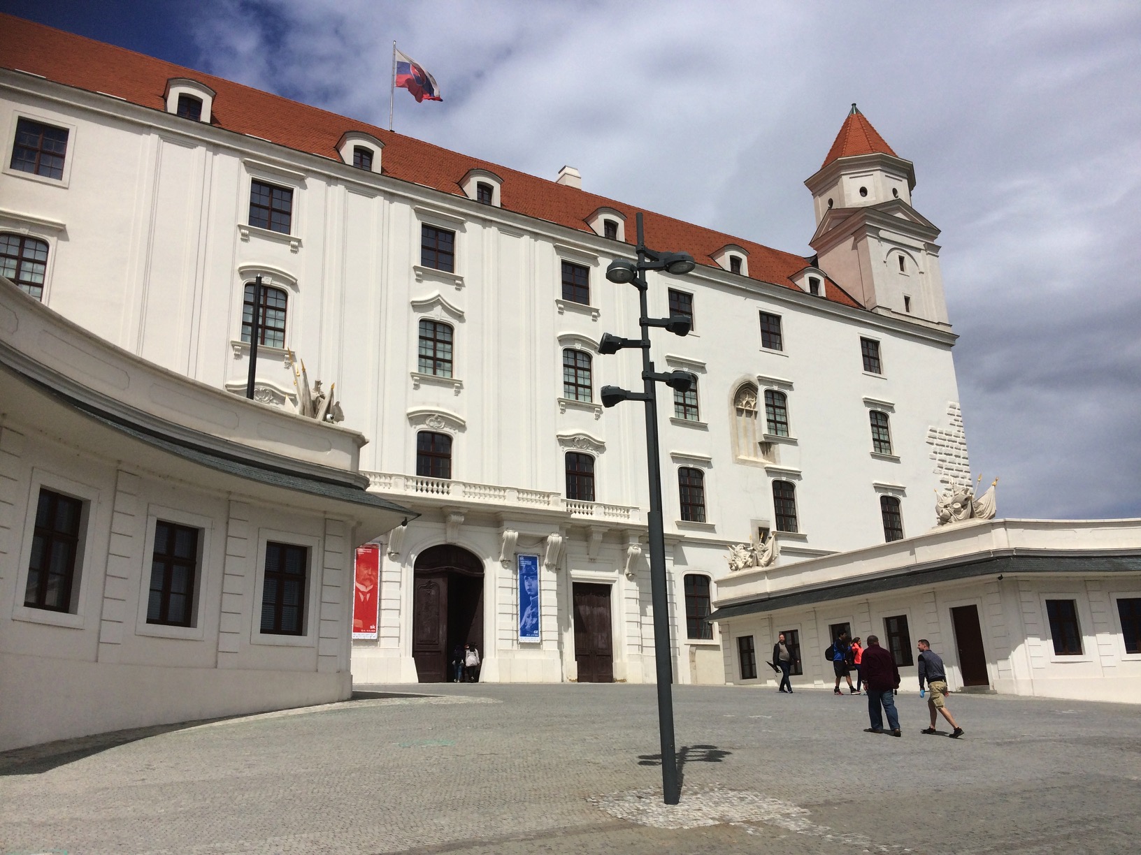 On Sunday I was feeling so much better so we decided to make the trip up the hill to Bratislava Castle. It was bustling with activity and there were many costumed folks dashing around getting ready for the Coronation Celebration performance that would take place later that day. We looked around the courtyard and found our way to the very formal garden. After a lovely stroll it was time to have some lunch.