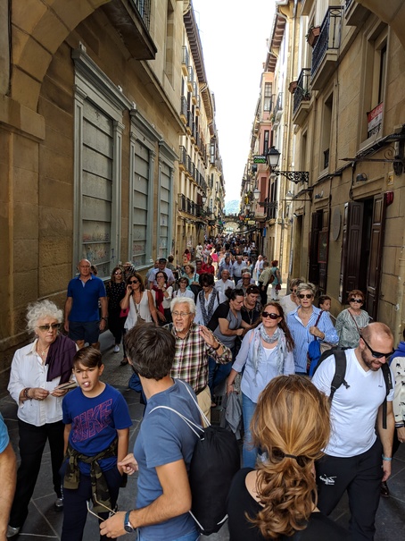 Accommodation-wise, San Sebastian was our most expensive stop, even though we didn’t stay in the old town but rather in Antigua a mere five minute walk from the beach. A fact we were able to take advantage of a number of times despite being well into October, when the water temperature was still a mostly-enjoyable 19-20 degrees Centigrade. One of the most memorable moments, in fact, was my bobbing around like some pale, bizarre oversized rubber ducky in the salty Atlantic, under a clear blue sky taking in the scenery of the stunning bay in San Sebastian as we were killing time before the evening’s upcoming Pintxos feast.