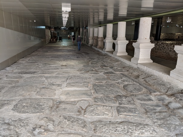 In a nutshell, the historical centre of Sofia is a feast for the eyes. The classic architecture is grand. There are parks and green spaces aplenty. There are cars of course, but it’s not the constant four-wheeled gladiator games you’d find in Bucharest. Sure, I still shoulder check before crossing the street, but I don’t do so with a sincere belief that this might just be the time I become a temporary Skoda hood ornament. Busy intersections often have elaborate underpasses that not only ensure that people may cross safely, but they also often make room for small retail businesses that hawk anything from fabric by the roll to coffee and (cheese-filled, no doubt) pastries. The city is kept remarkably clean for such a busy place and wide range of inhabitants. Evidence of a 3rd to 6th century heyday are scattered about almost everywhere. One of my favourite examples is in one of the many underpasses that doubles as archaeological exhibit. In fact, the proud Sofians have incorporated a 6th century road into the underpass. You literally walk on an ancient piece of human history, just crossing the street. While graffiti of course is evident on building sides, it’s rare indeed on historical buildings and I saw no trace of it on the completely accessible ruins. Not one. Is there honour among vandals?