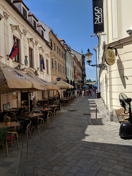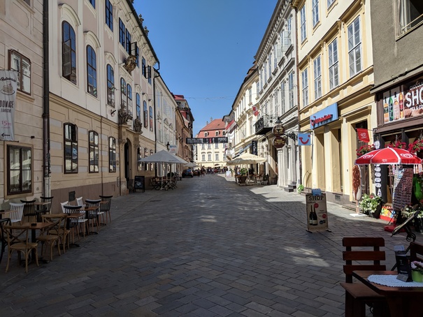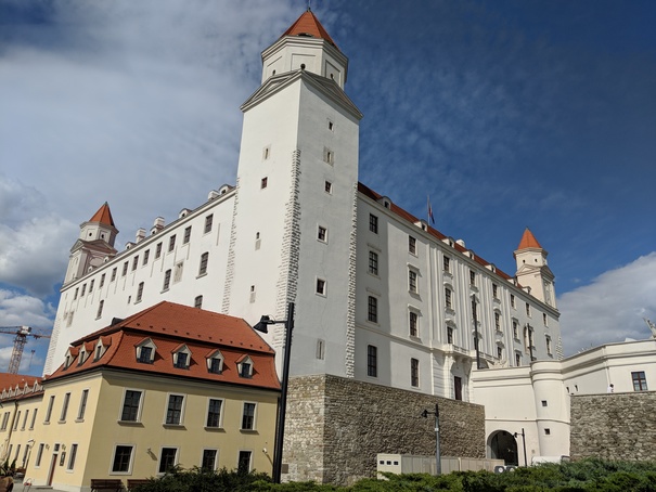 Just walking around in the old town, it’s easy to cover the main sights in just a few casual hours. For those who are in pursuit of elevated views of the city and the Danube, the Bratislava Castle is the obvious place to visit. Mild inclination and generally good repair sidewalks take you all the way up to the open main gates and the accessible castle grounds. Only entry to the castle itself costs money. The grounds encompassing the, admittedly rather modest, garden is open to the public including the clinically frugal. So far, we have accomplished very little during our visit here. We’ve found a rhythm of the city that works for us with strolling, eating and drinking with the odd working session peppered in to keep the economy going.