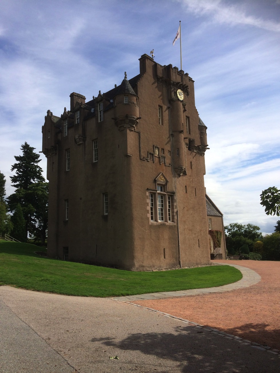 Only two of the castles in the area were accessible by public transportation and luckily both on the same route. Thus began our day of castles. The farthest one out was Crathes Castle, it had a beautiful walled garden and grounds that were utterly breathtaking. The bus let us off at the gate and we had a scenic stroll trough the trees to the main building. The impressive structure also had a public washroom that I was grateful to use.